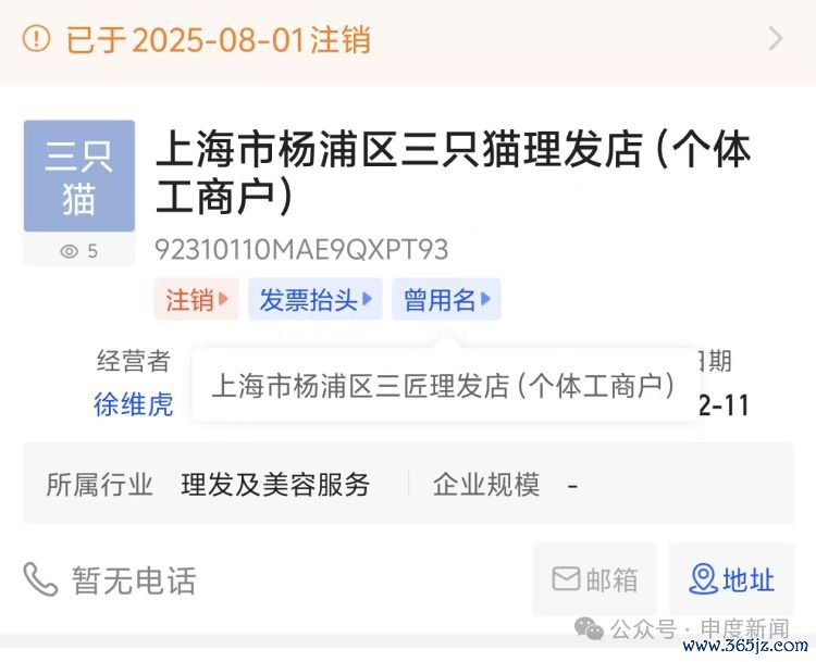 ▲启信宝的公开信息暴露,三匠剪发店已处于刊出情状